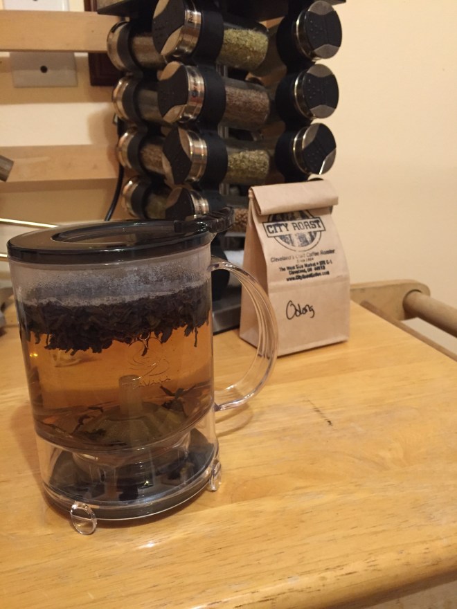 Steeping my morning cup of tea. Oolong curtesy of Cleveland’s own, City Roast.