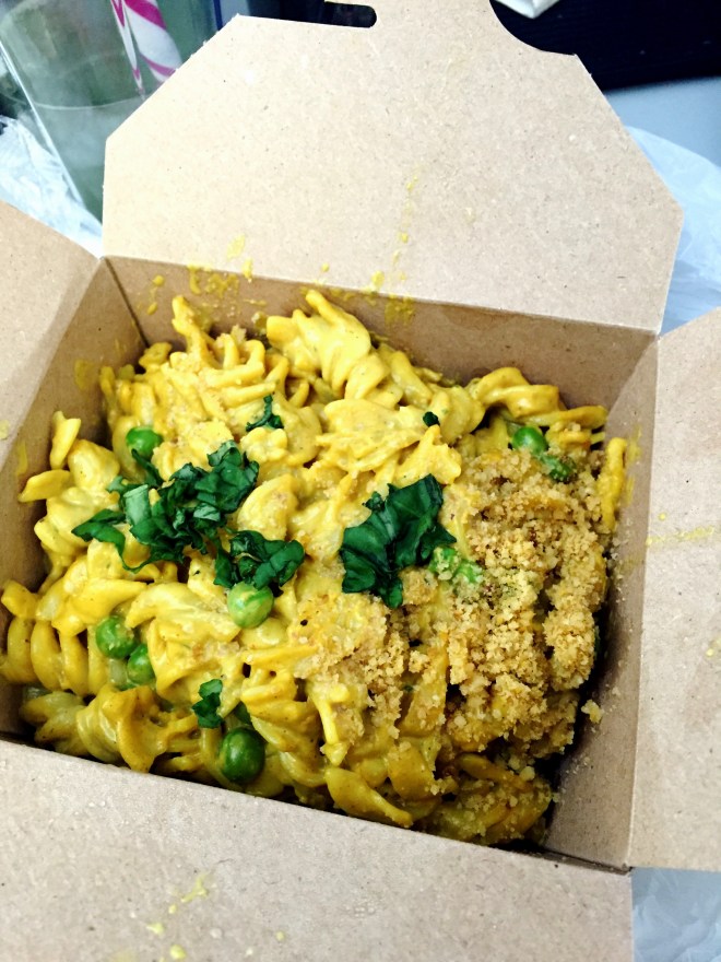I enjoyed the Rueben so much that I revisited Helio today for lunch. I’d already perused Helio’s Instagram which is packed with photos of what I assume is some of their more popular items. After some scrolling I’d decided to get the rotini bake. While waiting I over heard a pretty cool conversation between 2 patron’s. One older and one younger. The older gentleman was basically schooling the young cat on being vegan and how to go vegan successfully. After about 7 minutes I finally got my rotini bake.