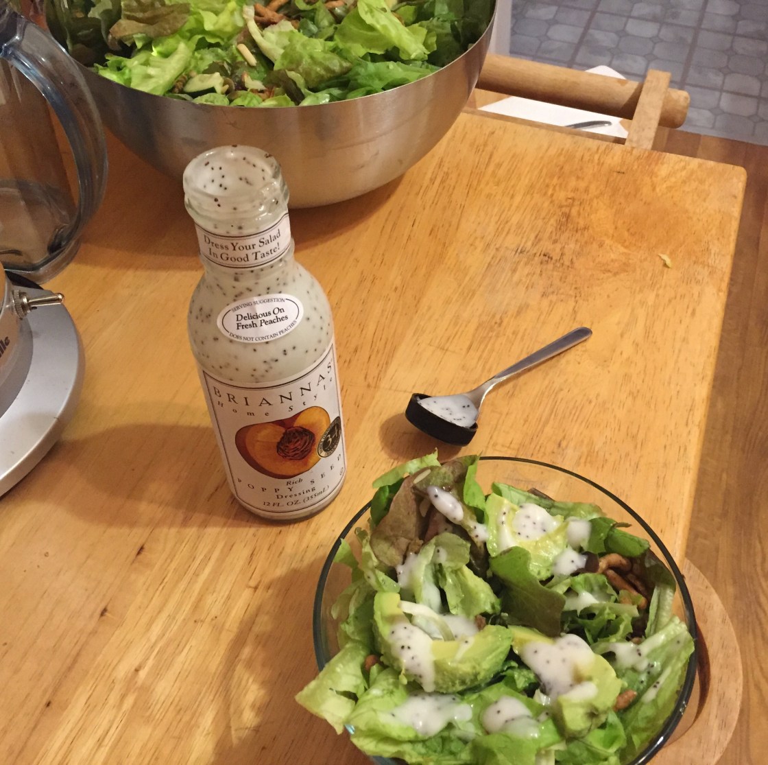 *I sliced and mashed the avocado so it would coat the lettuce. Then I squoze the lemon juice all over the salad. Mix the salad so the lemon juice and avocado coat the lettuce and everything else as dressing.