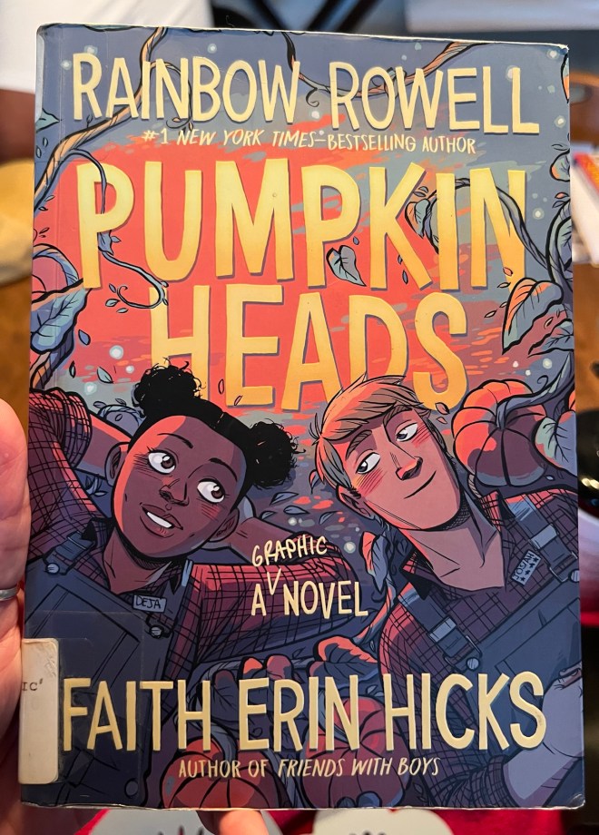 Pumpkin Heads is a graphic novel about a boy and a girl who work together at a local pumpkin patch. They’ve worked together seasonally every autumn of their high school years. Annually, when fall is over, these friends say goodbye to one another until next autumn. This season, however is potentially their last time working together. They’re seniors and who knows what the future holds.